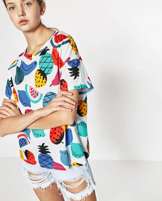 I bought a fun shirt from Zara to mix up the blackness of my wardrobe. Fruit prints tend to be a common thread, still.