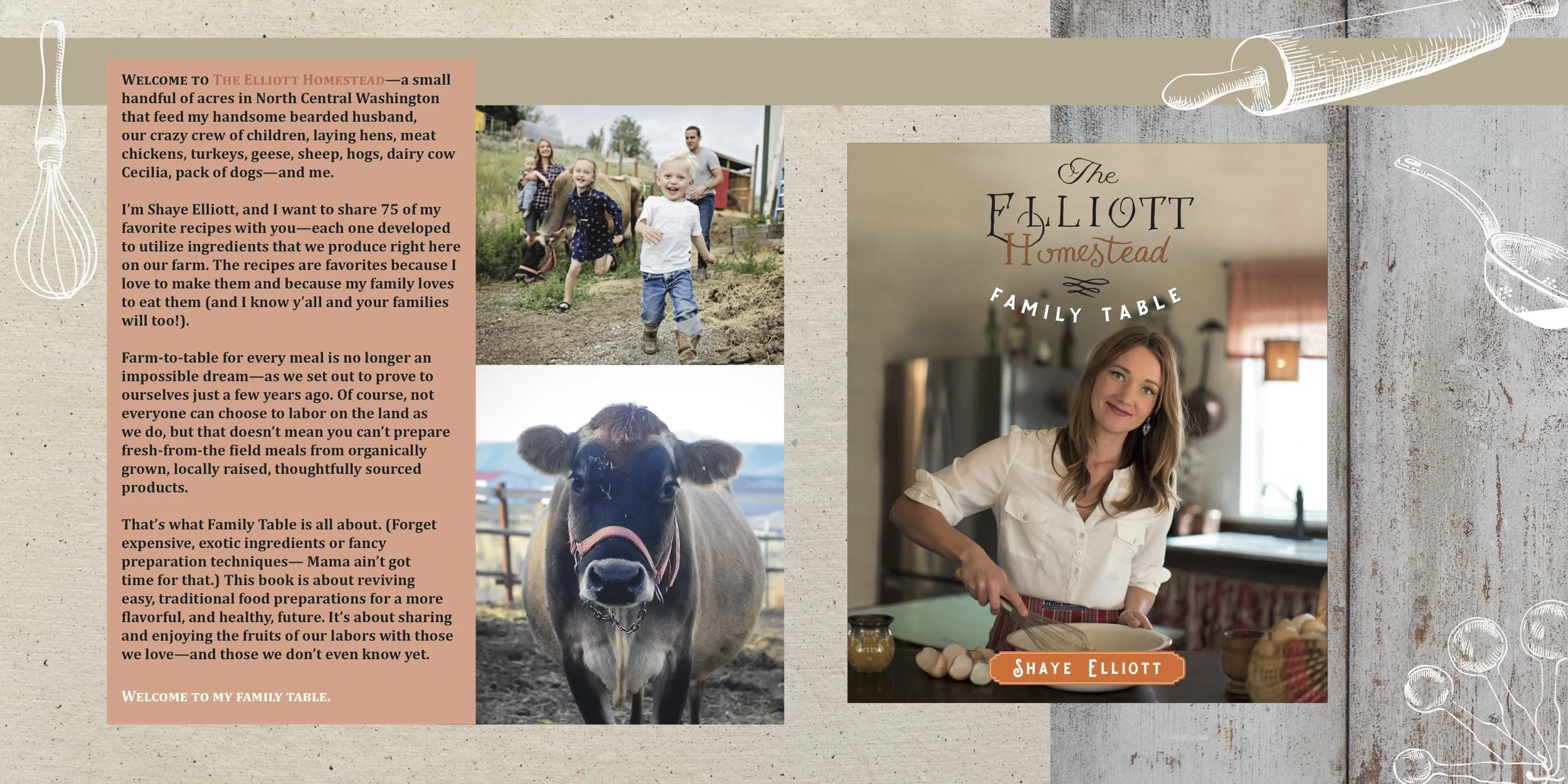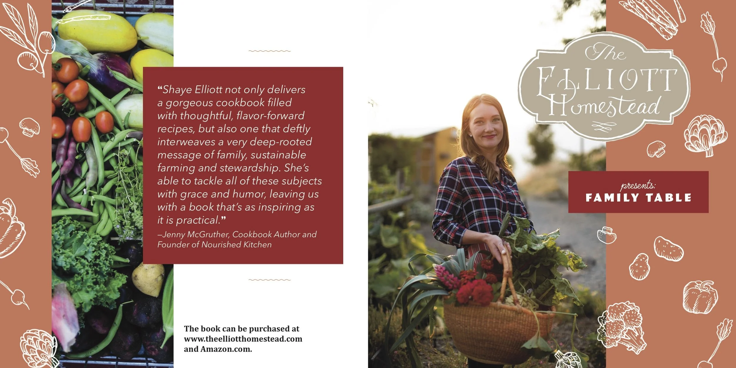Project: Create a promotional pamphlet for the release of Shaye Elliott's new cookbook "Family Table."